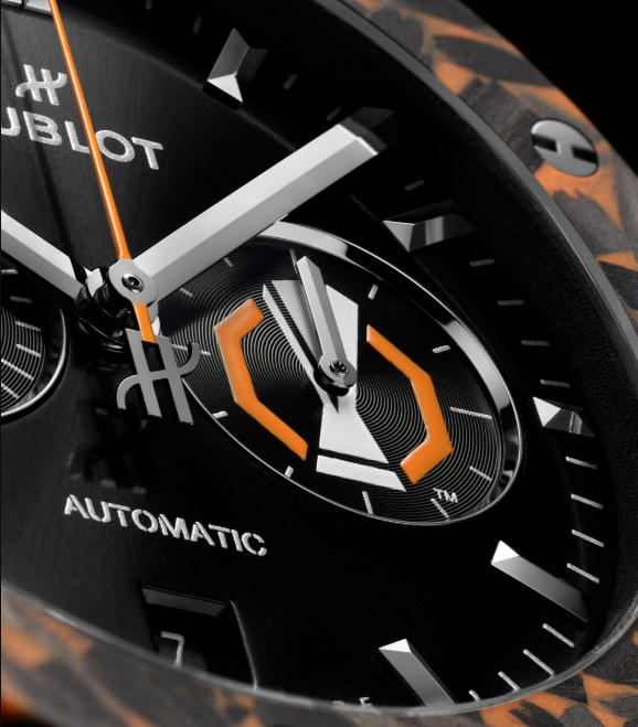 The aesthetic codes of the UEFA Europa League are faithfully rendered in a palette of black and orange. AAA fake Hublot watches developed a technically sophisticated bezel for this model, crafted from carbon fiber that ranges from deep black to anthracite gray. This material is inlaid with vibrant orange fiberglass and punctuated by the iconic six H-shaped titanium screws. Because the assembly of these fibers is random, each of the 50 watches in the series is genuinely unique.